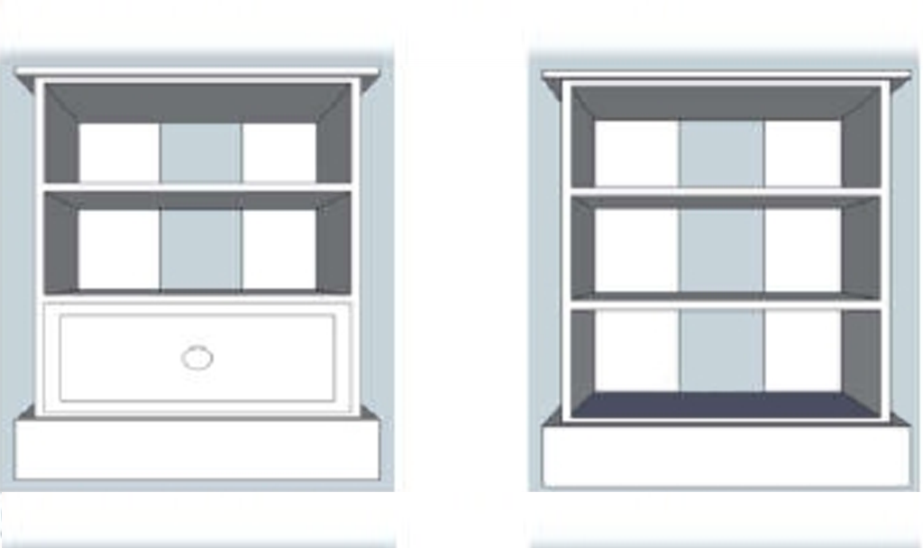 Solid, fsc pine TV / Media unit with either 3 shelves or 1 drawer.